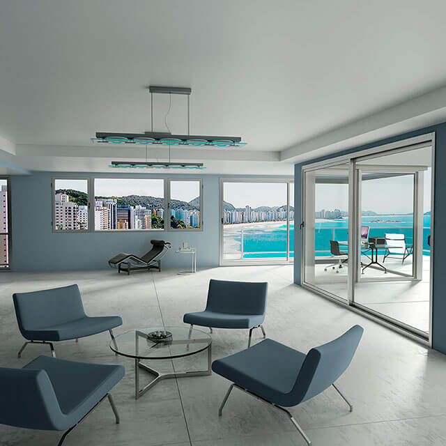 Sistema de Carpintería de alta prestación con diseño de vanguardia y estética minimalista de líneas rectas. Desarrollo innovador en aberturas corredizas de gran tamaño con excelente hermeticidad, para viviendas de alta gama y edificios en altura. Cuenta con puertas y ventanas corredizas, y una amplia gama de tipologías batientes.