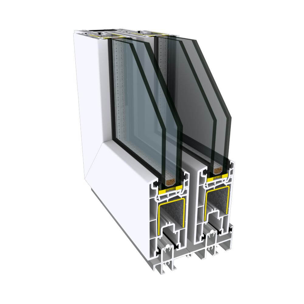 Esta nueva línea es apta para 2,3,4 y 6 hojas móviles, con sistema de herrajes standard, permitiendo acristalar vidrios simples y dobles hasta 24 mm de espesor.
